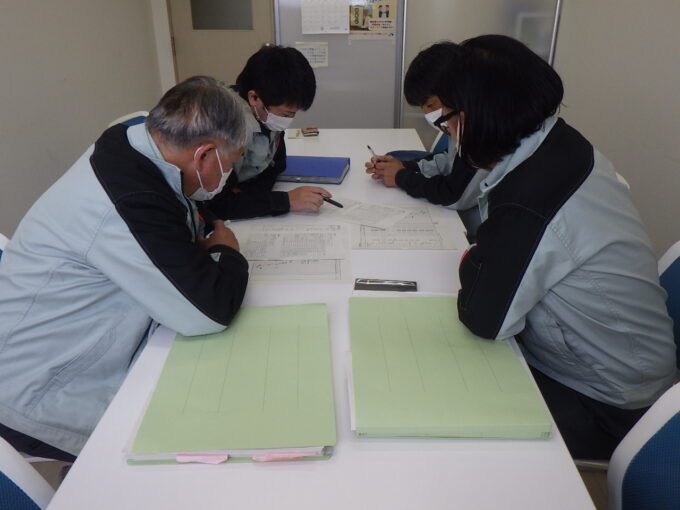 新規工事発注に向けて、技術者が担当する業務の進捗状況などを確認しながら、技術者各人に合った技術的な指導を行い、技量向上に向けて研修を行っています。